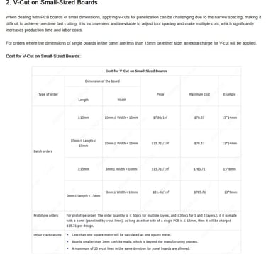 The rationale for the additional charge is the extra labor and lower speeds required to achieve v-cuts on small PCBs... I guess that's reasonable!